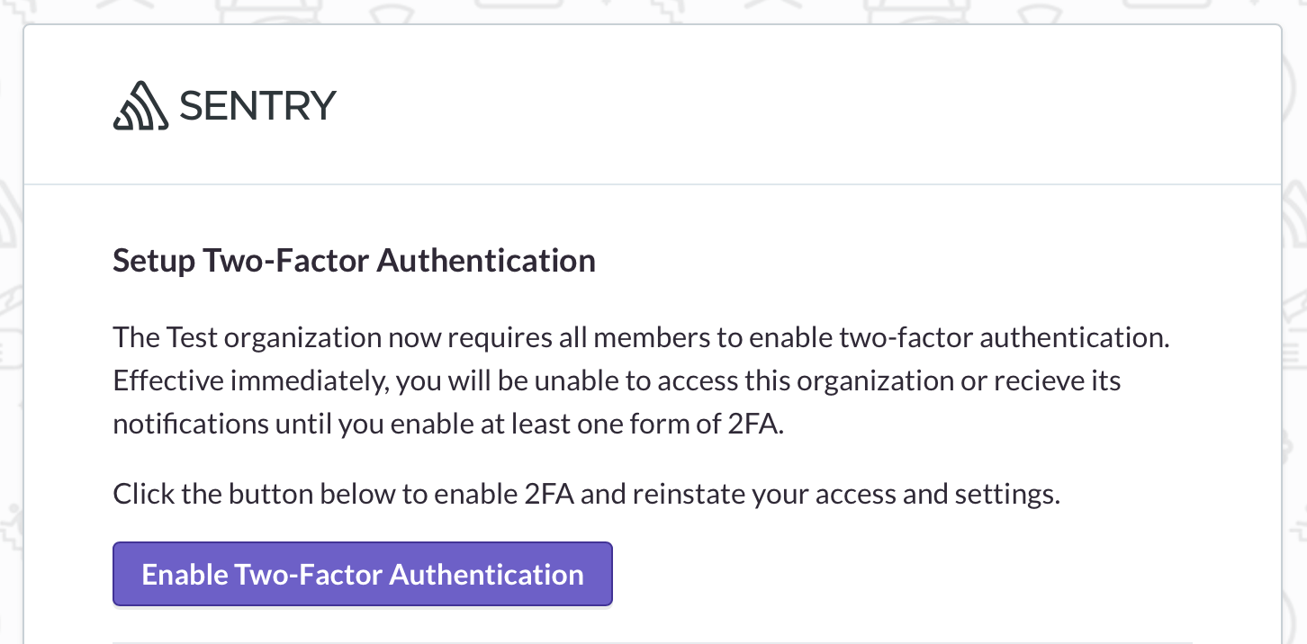 For an added layer of security, you can require your organization members to sign in to Sentry with two-factor authentication (2FA).
