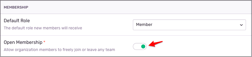 If "Open Membership" is toggled off, team access is on an invite-only basis. Users can request to join a team and invite others to join their teams, but access requests and invitations must be approved by an Org Manager, Org Owner, or a Team Admin for that team. Org Admins who aren't part of the team also need to follow this process to join. Once they join, they automatically become a Team Admin.